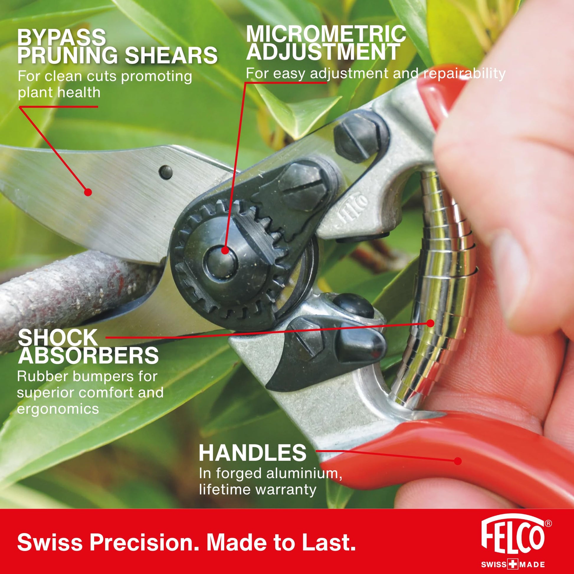 Felco F2 Pruning Shears – 9.25" Swiss-Made Garden Clippers for Professional Pruning | Hand Pruners for Gardening | Garden Tool Cutter with Precision Bypass Blade, Aluminum Body, Replaceable Parts