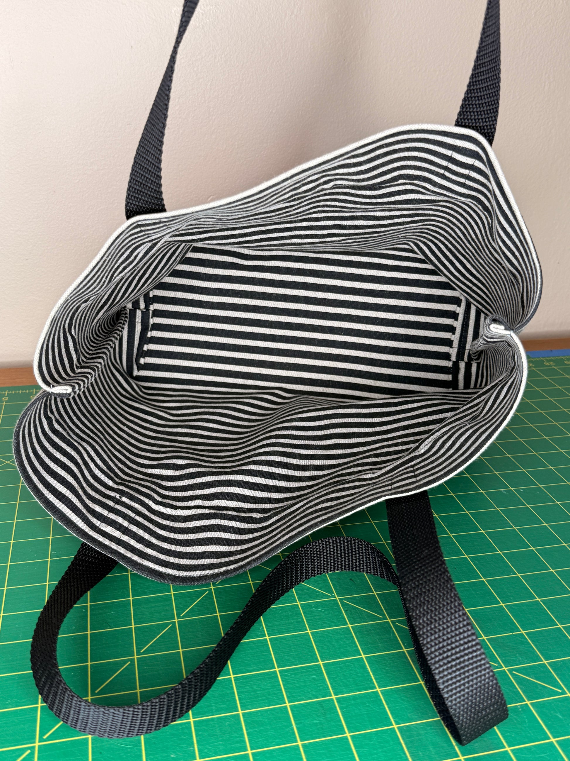 Made from thrifted and gifted fabric, this water resistant tote is perfect for rainy day errand running or forest picnics. The outer red fabric has a rubber lining and I used French seams to sew it together so the seams are slightly more water resistant.